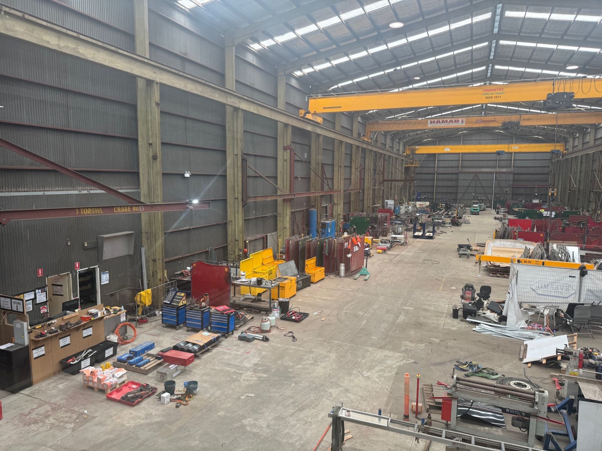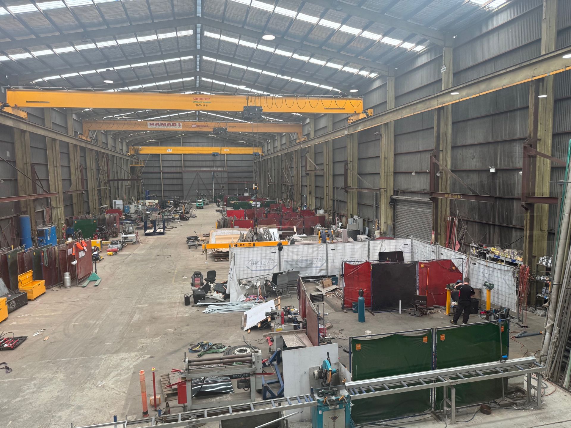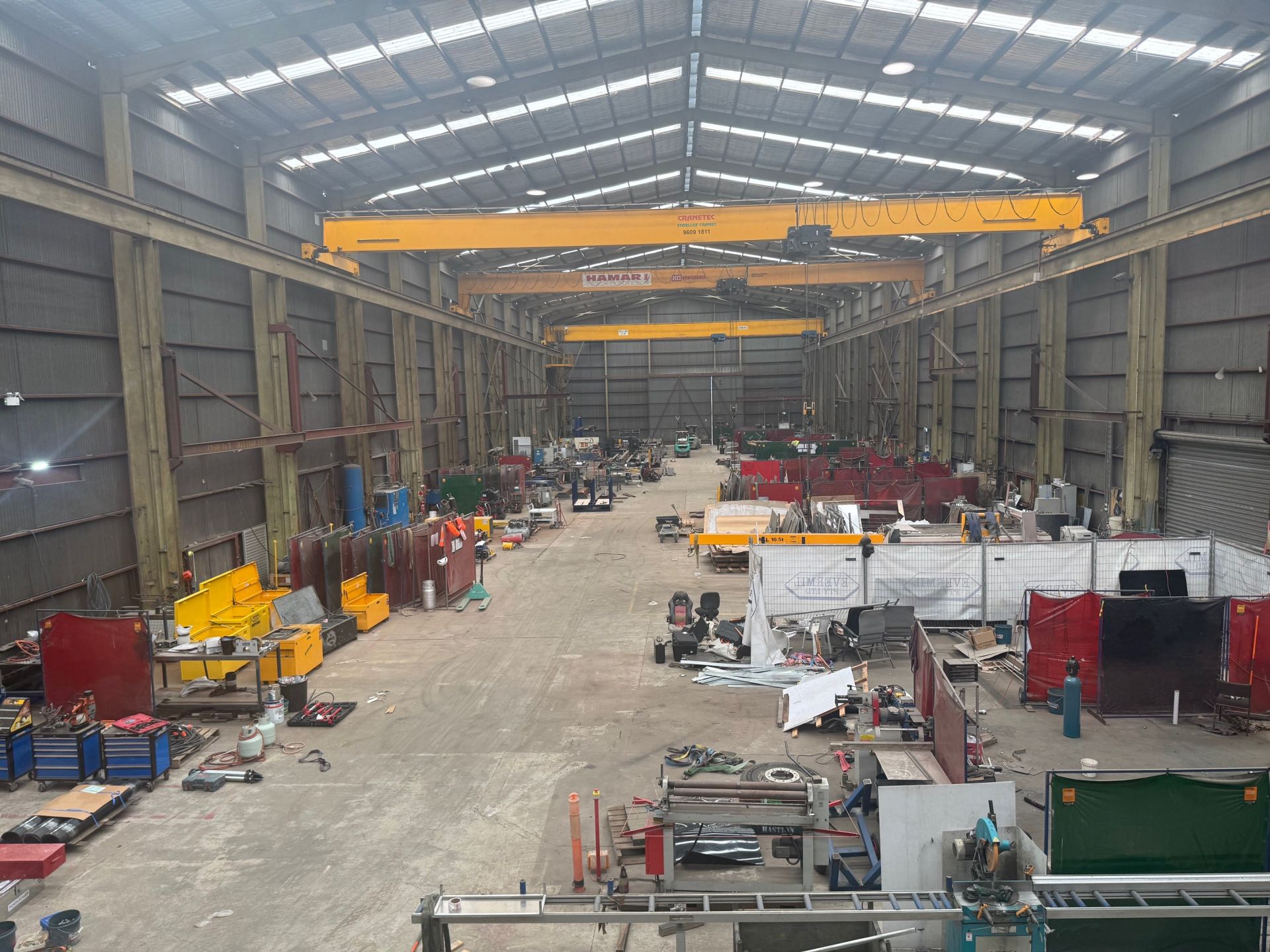 * Three overhead and gantry cranes - 2 x 16t and 1 x 10t with additional smaller side cranes.