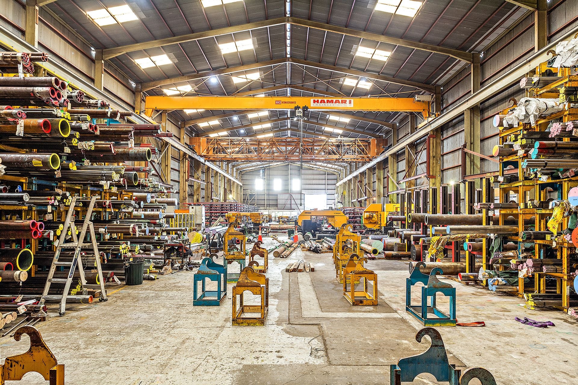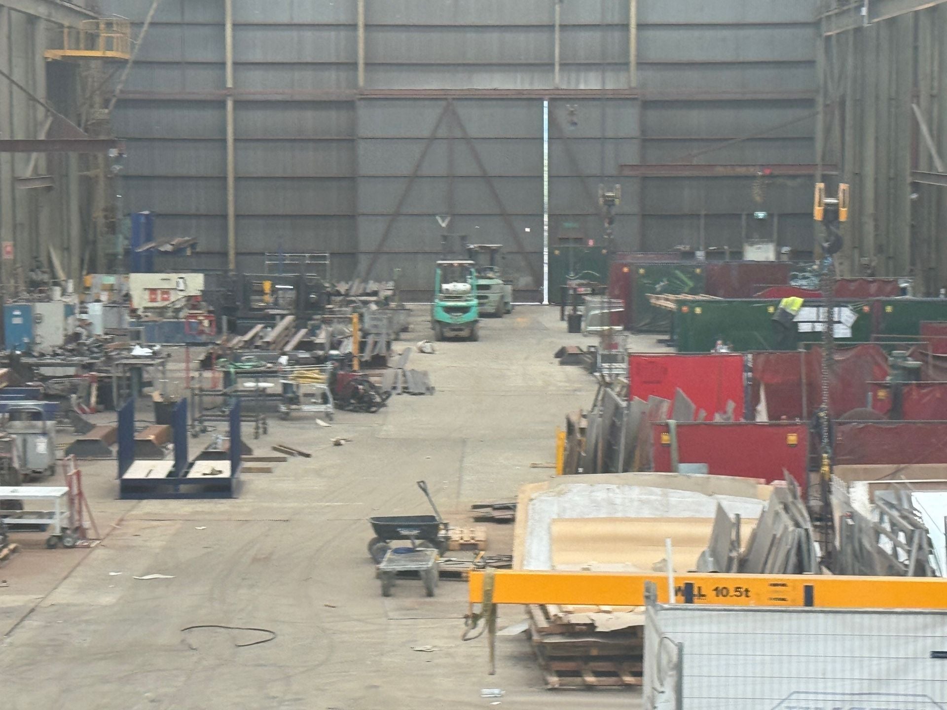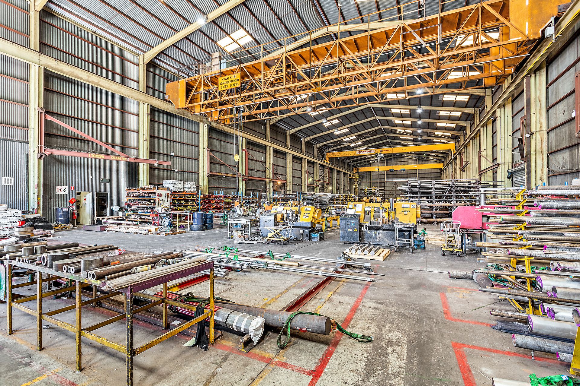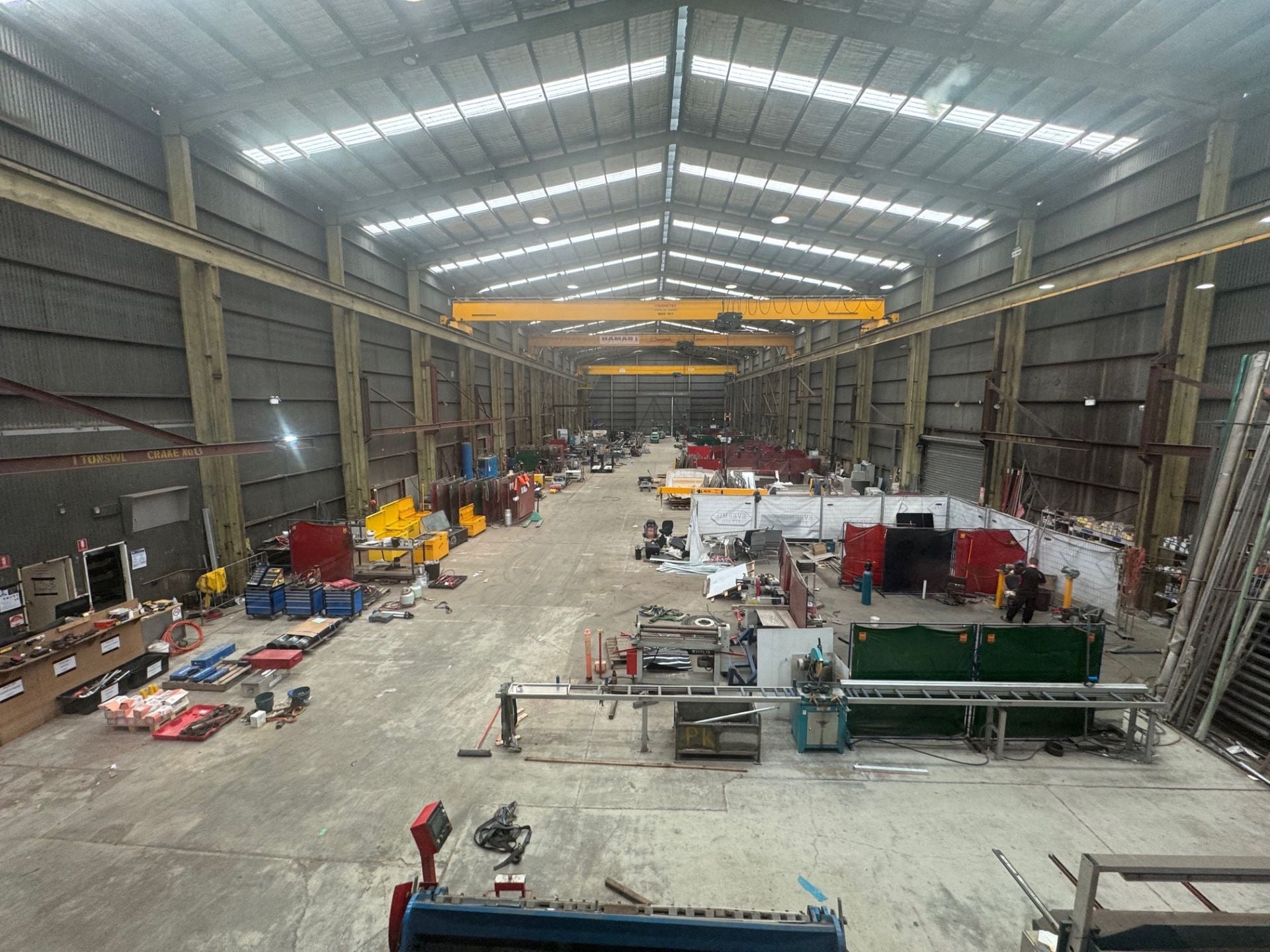 * Three overhead and gantry cranes - 2 x 16t and 1 x 10t with additional smaller side cranes.