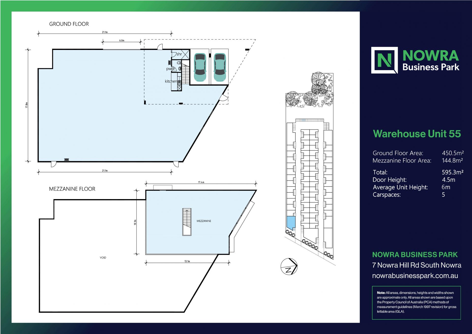 * Includes 450.5sqm Ground Floor Area + 144.8sqm of Suspended Concrete Mezz Area - Total Area 595.3sqm