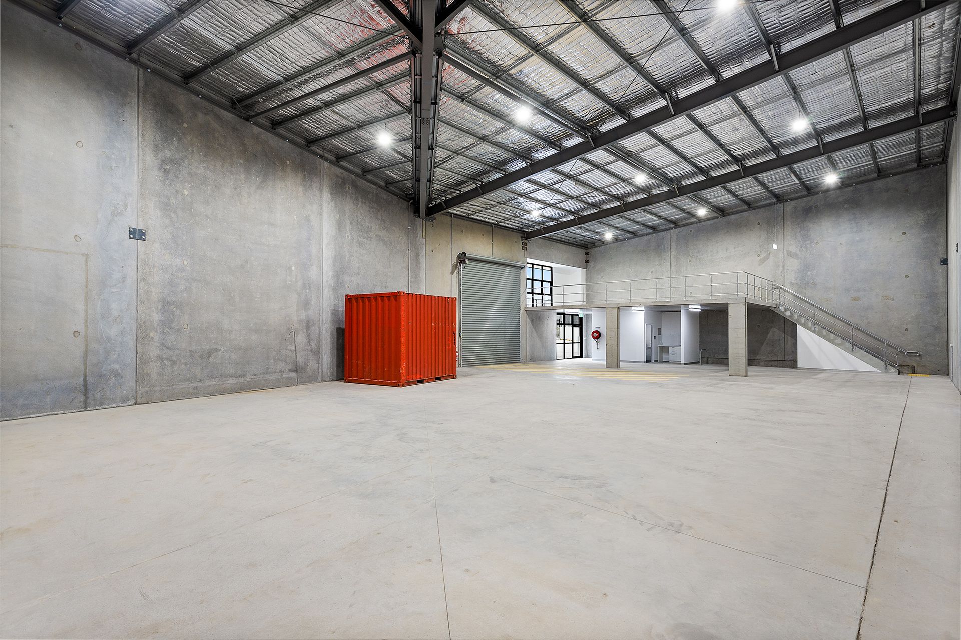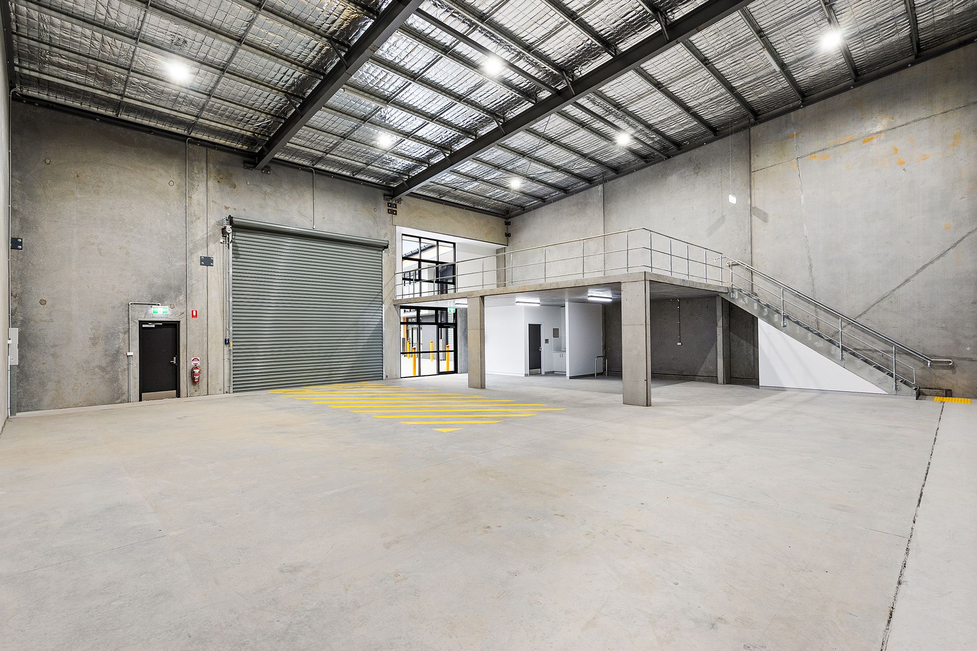 * High clearance roller door and glass facade allowing for natural light